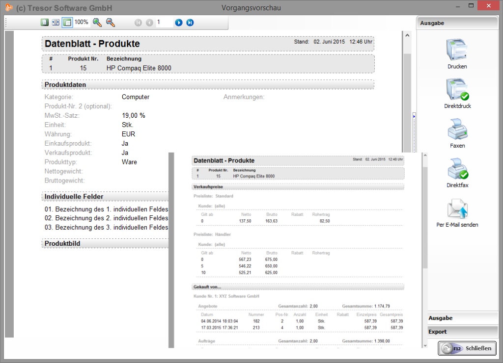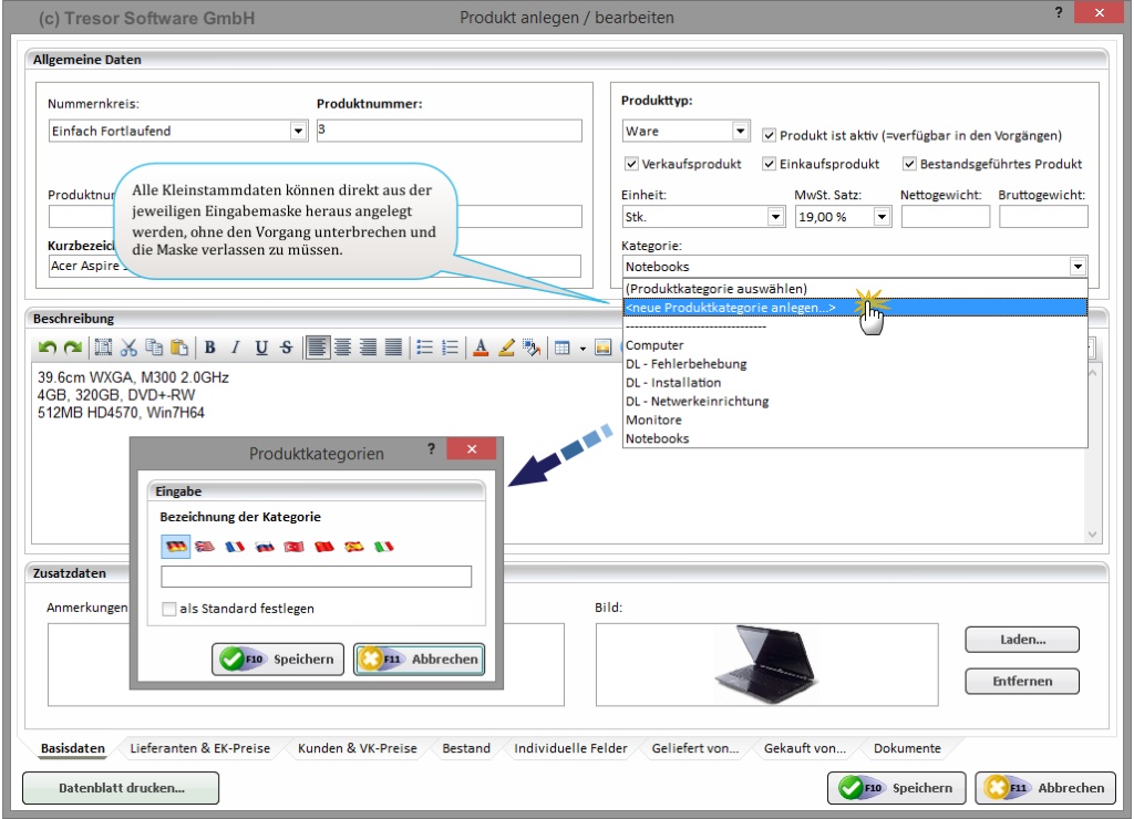 Highlight-Funktionen der Produktverwaltung von "Tresor Warenwirtschaft"