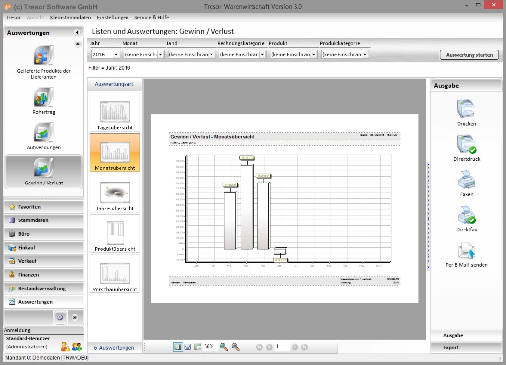 Ob der Umsatzvergleich des letzten und des aktuellen Jahres, Top-10 Kunden bzw. Produkte, detaillierte Umsatzauswertungen, Offene Posten Liste für Rechnungen und Gutschriften etc.: Tresor Warenwirtschaft bietet viele Auswertungsmöglichkeiten, um alle wichtigen Zahlen und Entwicklungen im Block zu behalten. Erfahren Sie mehr über den Programmbereich rund um die Betriebskennzahlen / Auswertungen