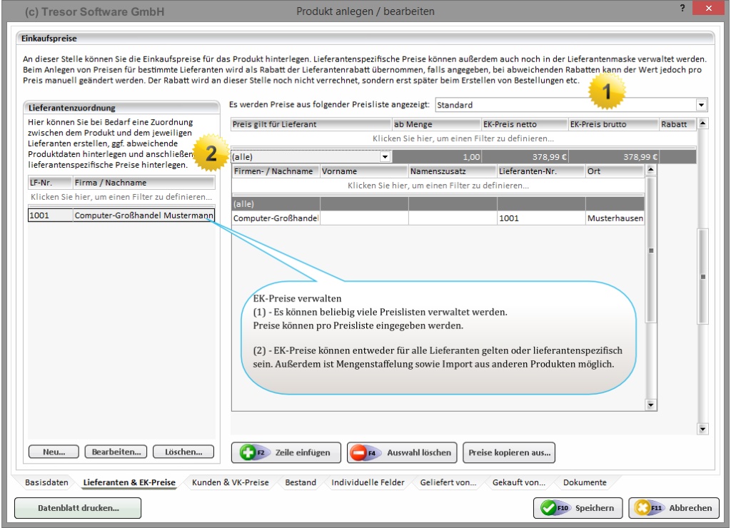 Die Produktverwaltung lässt sich ganz nach Ihren Bedürfnissen einrichten. Sie können von der Preisgestaltung über die Produktbeschreibung bis hin zur Preisstaffelung alles individuell anlegen. Dadurch lässt sich die Tresor Warenwirtschaft leicht in Ihre bestehenden Geschäftsprozesse integrieren. Erfahren Sie mehr über den Programmbereich rund um die Produktverwaltung