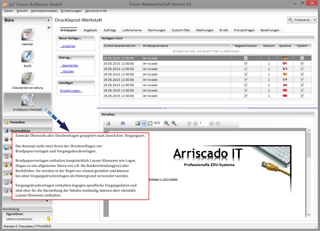 In Zeiten der Globalisierung ist die Mehrsprachigkeit ein wichtiger Bestandteil der modernen Businessanwendungen geworden. In Tresor Warenwirtschaft können Inhalte wie z.B. Produktbeschreibungen oder Textbausteine so wie die Druckvorlagen neben Deutsch noch in folgenden Sprachen hinterlegt werden: Englisch, Französisch, Russisch, Türkisch, Chinesisch, Spanisch und Italienisch. Erfahren Sie mehr über den Programmbereich rund um die Mehrsprachigkeit