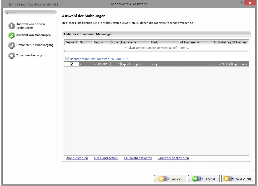 - Mahnstufenerhöhung bei bestehenden Mahnungen